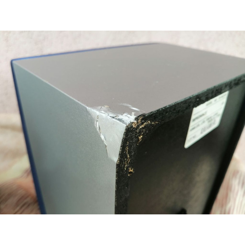 Sajnos szállítás közben elejtették, és ezért megsérült az egyik hangdoboz sarka (fotóztam). A használhatóságát nem befolyásolja, és normál nézetben egyáltalán nem látható.