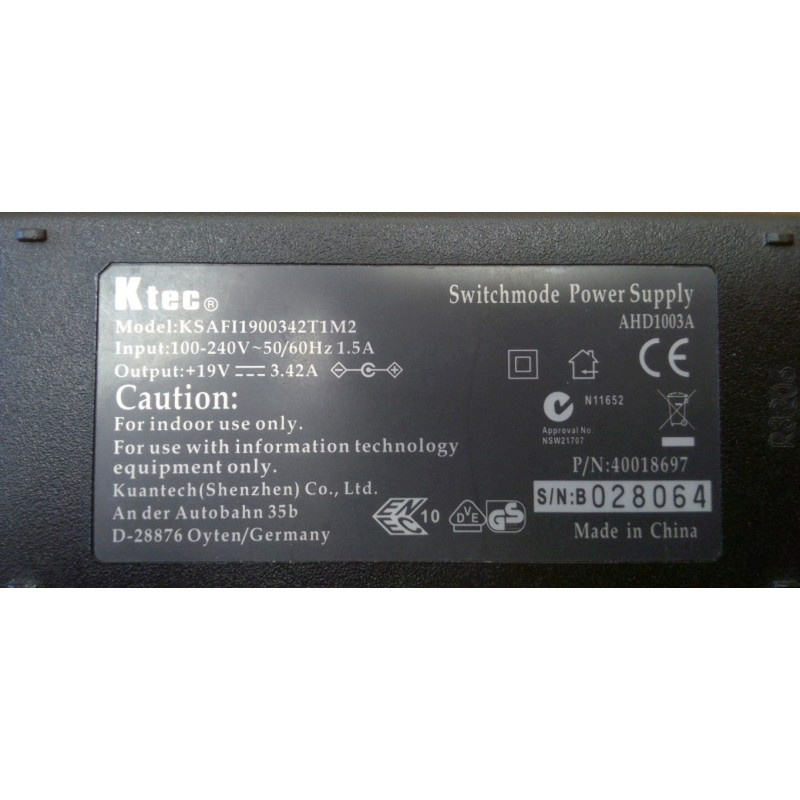 Ktec AHD1003A AC Adapter, 19V DC, 3.42A, 60W, töltő adapter Medion, Targa laptopokhoz